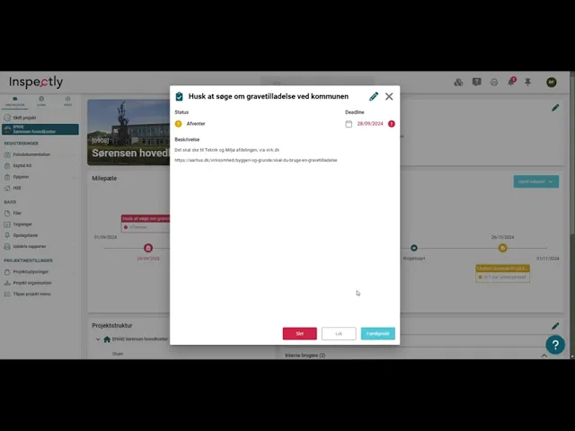Forestil dig en løsning, der giver dig fuld kontrol over alle dine projektdeadlines, dokumenter og underskrifter – uanset om du er en mindre entreprenør med få projekter eller en stor aktør med mange projekter kørende på samme tid. Med Milepæle i Inspectly’s kvalitetsstyringsplatform får du nu et omfattende værktøj, der samler alt, du behøver, ét sted. Dette gør dine administrative processer både enklere og mere strukturerede.