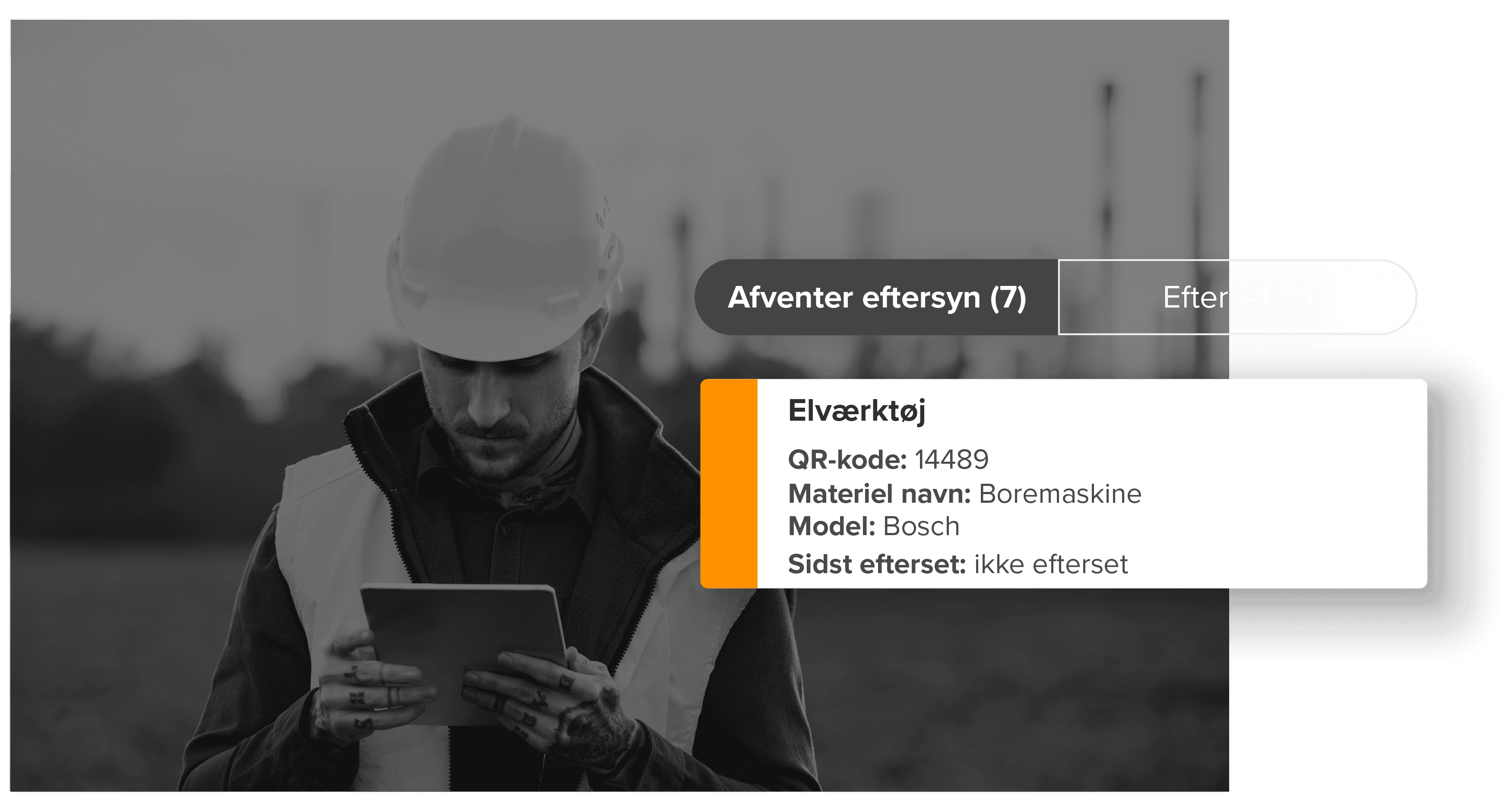 Via Inspectly-QR-koder kan hvert enkelt materiel scannes og identificeres. Dette sikrer dels, at medarbejderen altid ved, at det er det rigtige materiel, han/hun arbejder på, dels at den udførte servicerapport altid bliver gemt på den rigtige sag.